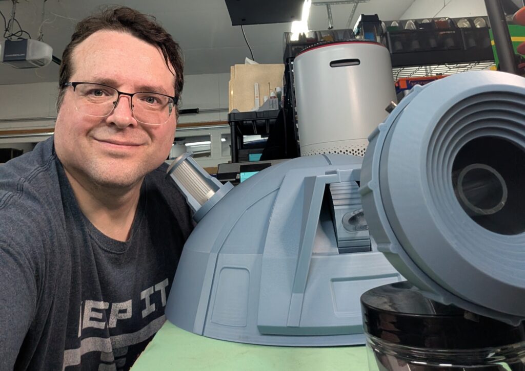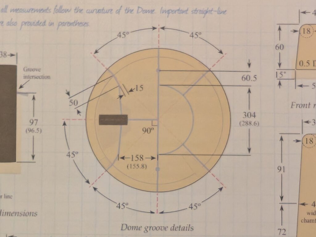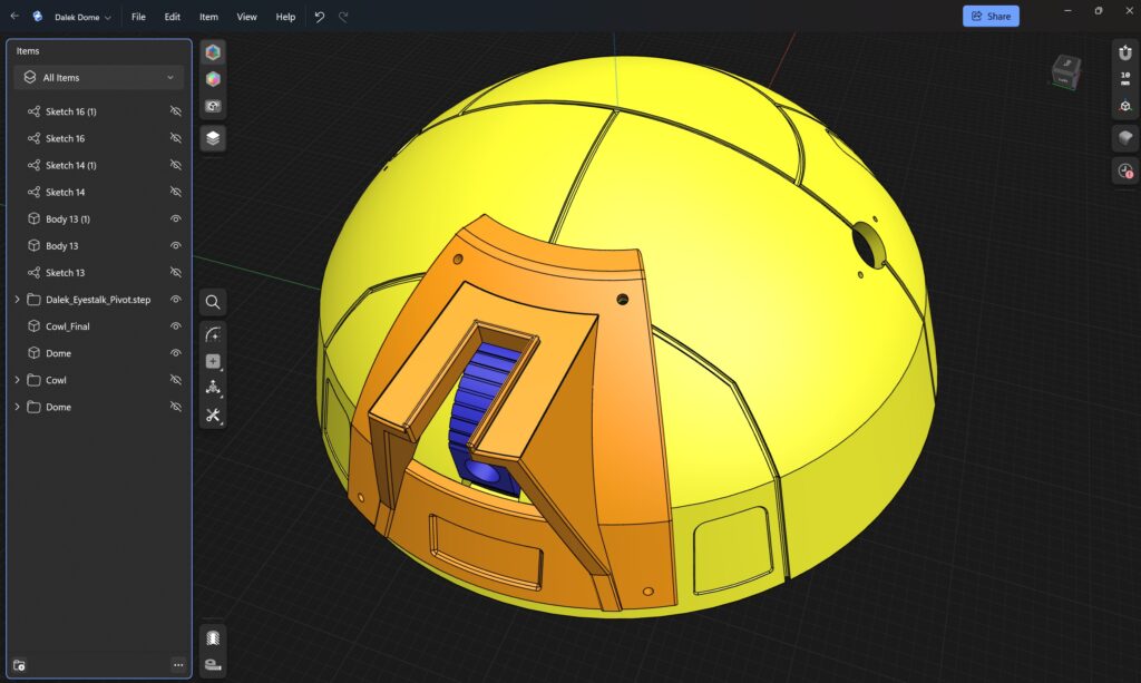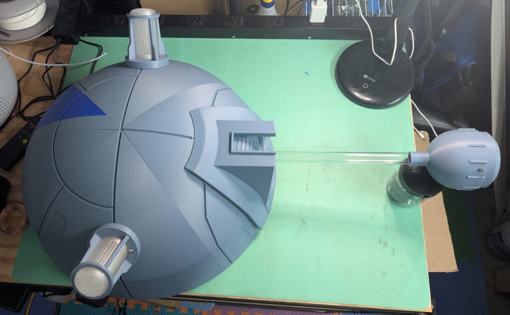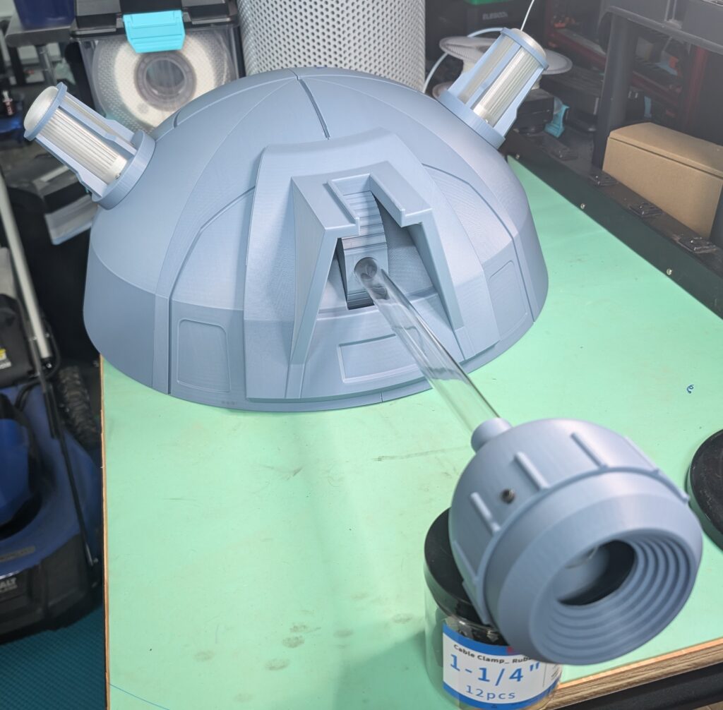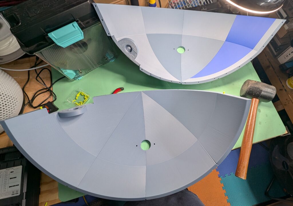 I cut the dome into 8 “pie slices”, so it could fit on my printers, and avoid large overhangs from the curves. Trying to get all the pie slices fitted together took some “encouragement” from a rubber mallet.